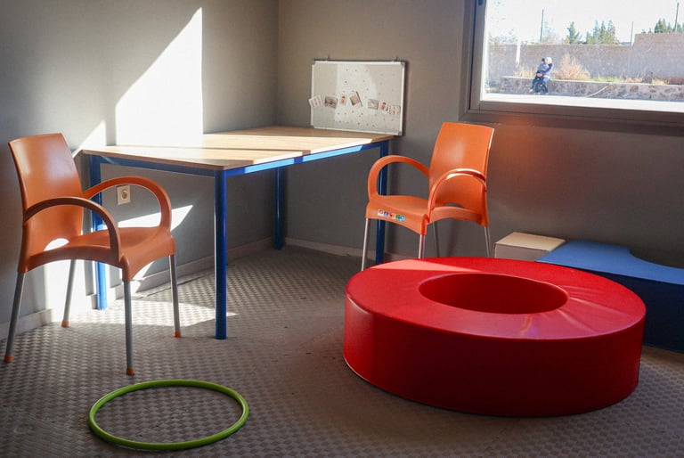 Le bâtiment principal du centre se compose de salles de cours, salle d’éveil sensoriel, salle Montessori, salle réservée aux éducateurs et éducatrices, cuisine ouverte avec réserve, buanderie, réfectoire, bureau pour l’administration, bureau pour les professionnels, salle d’orthophonie, salle de psychomotricité, espaces pour les activités collectives, 2 piscines couvertes, sanitaires (toilettes et douches).